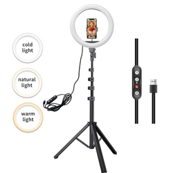 Luce ad anello a tre colori da 10 pollici all'ingrosso con luce a Led a cerchio di riempimento del treppiede per il trucco Livestream Tiktok Video