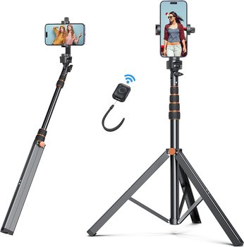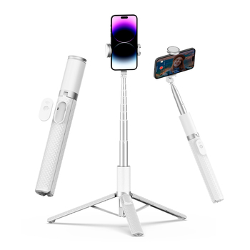 Tripé de viagem 3 em 1 para celular, alumínio branco, 64" com controle remoto, para selfie, streaming ao vivo